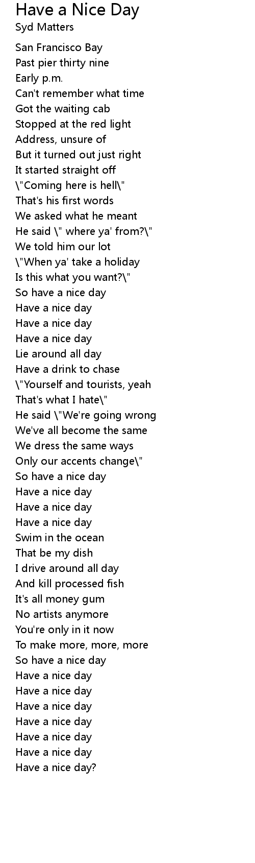Have a nice day? |