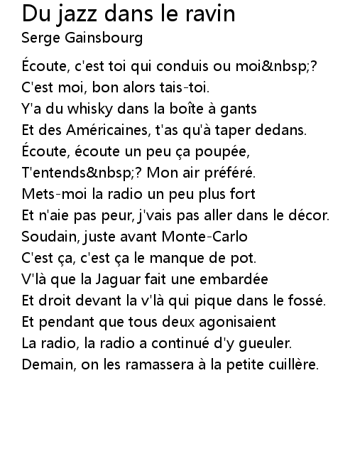 | Song | Du jazz dans le ravin |