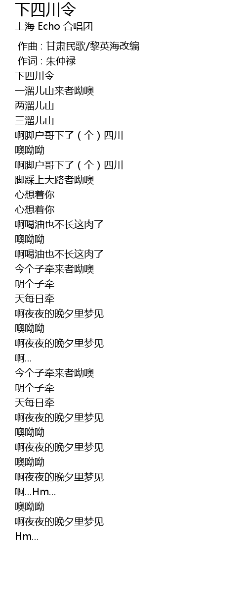 | [00:00.00] | 作曲 : 甘肃民歌/黎英海改编 |
