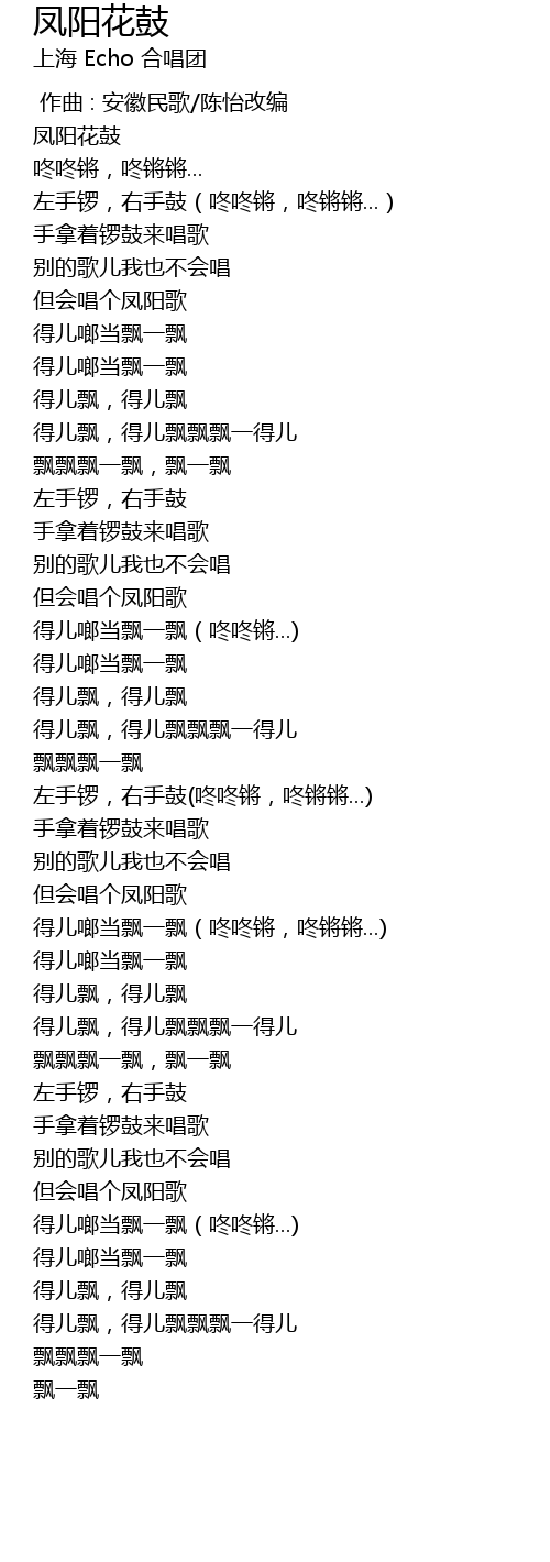 | [00:00.00] | 凤阳花鼓 |