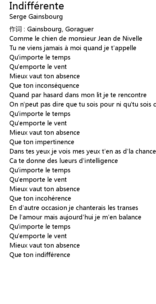 | 作词 : Gainsbourg, Goraguer | |