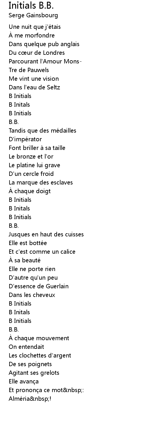| Song | Initials B.B. |