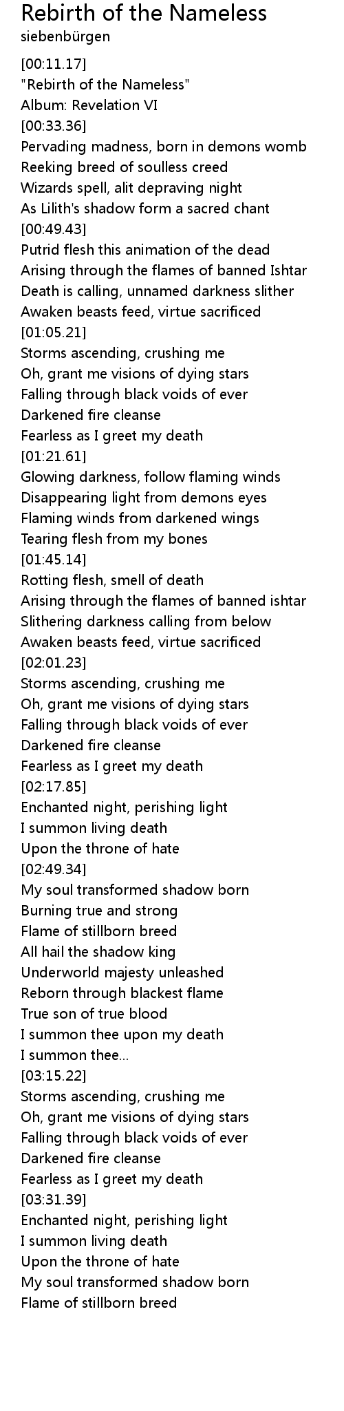"Rebirth of the Nameless" |