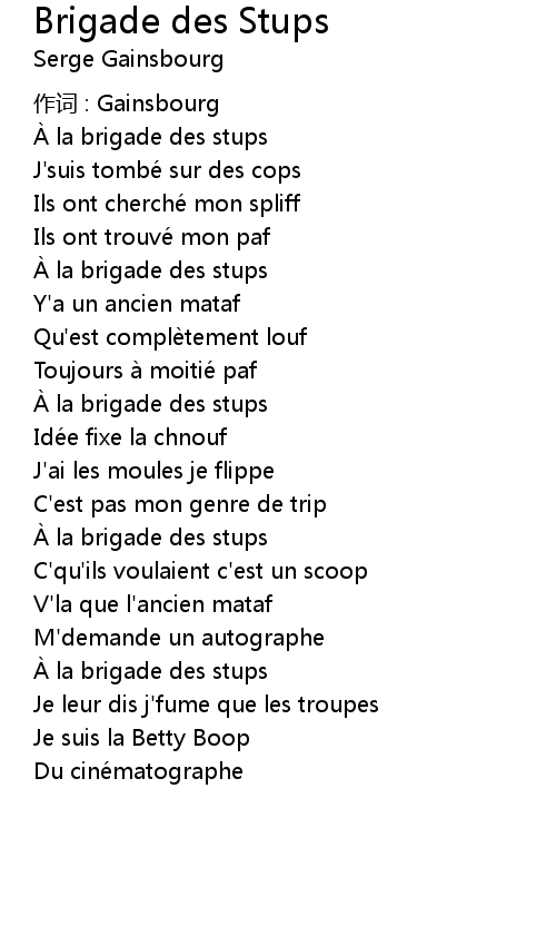 | 作词 : Gainsbourg | |