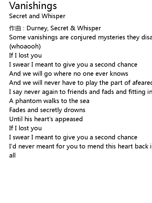 | Some vanishings are conjured mysteries they disappear inside of mist and breeze (whoaooh) | |