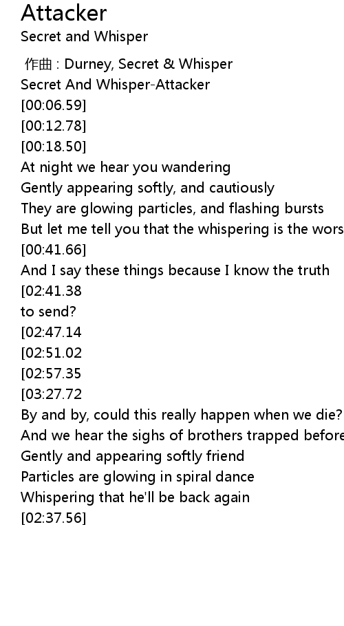 | [00:00.56] | Secret And Whisper-Attacker |