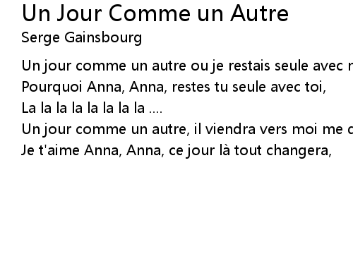 | Je t' aime Anna, Anna, ce jour la tout changera, |