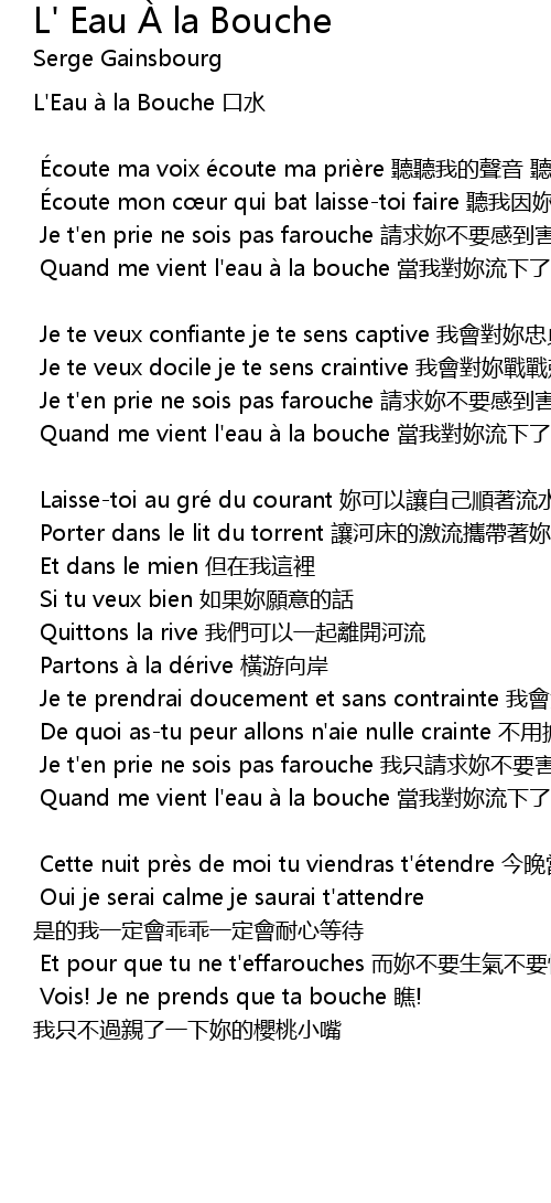 | Song | L' Eau À la Bouche |