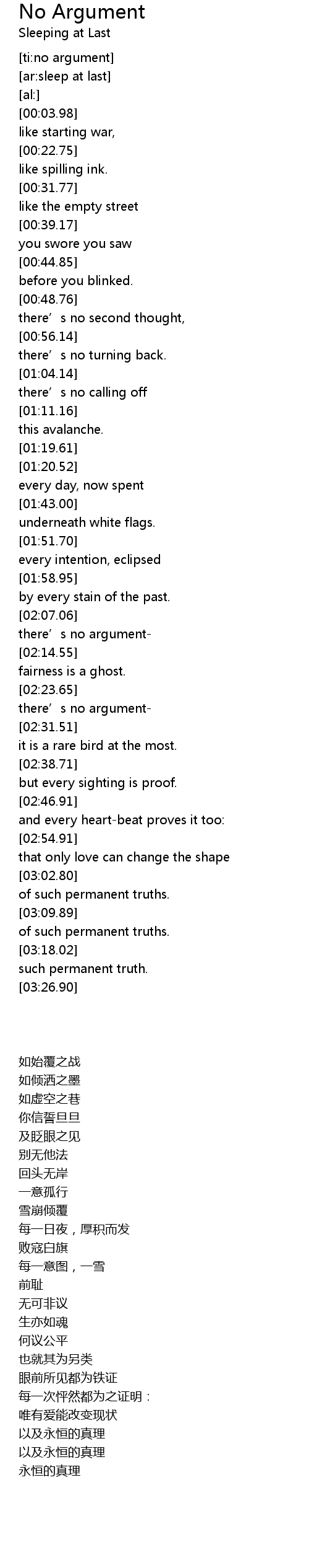 | [02:26.20] | there' s no argument |