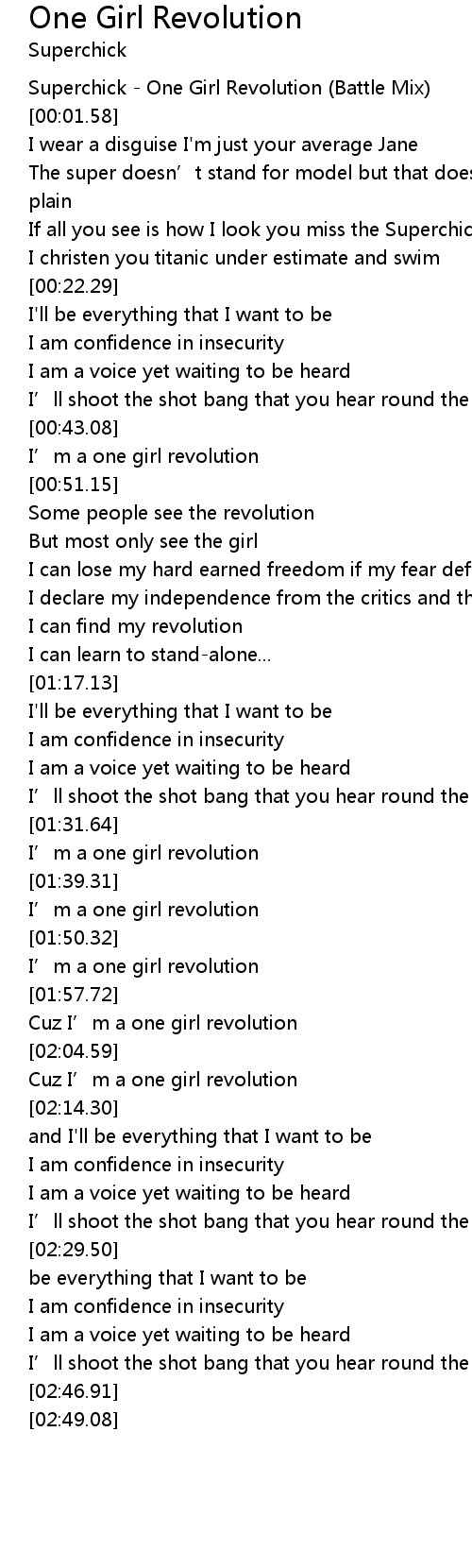 | [00:00.31] | Superchick One Girl Revolution Battle Mix |