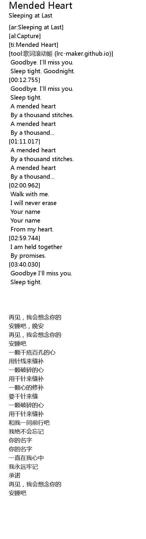 | [00:00.000] | Goodbye. I' ll miss you. |