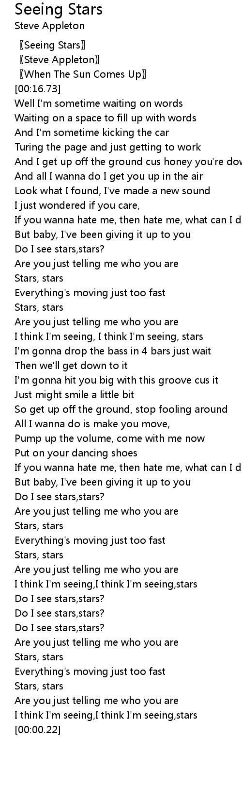 | [03:16.47] | I think I'm seeing,I think I'm seeing,stars |