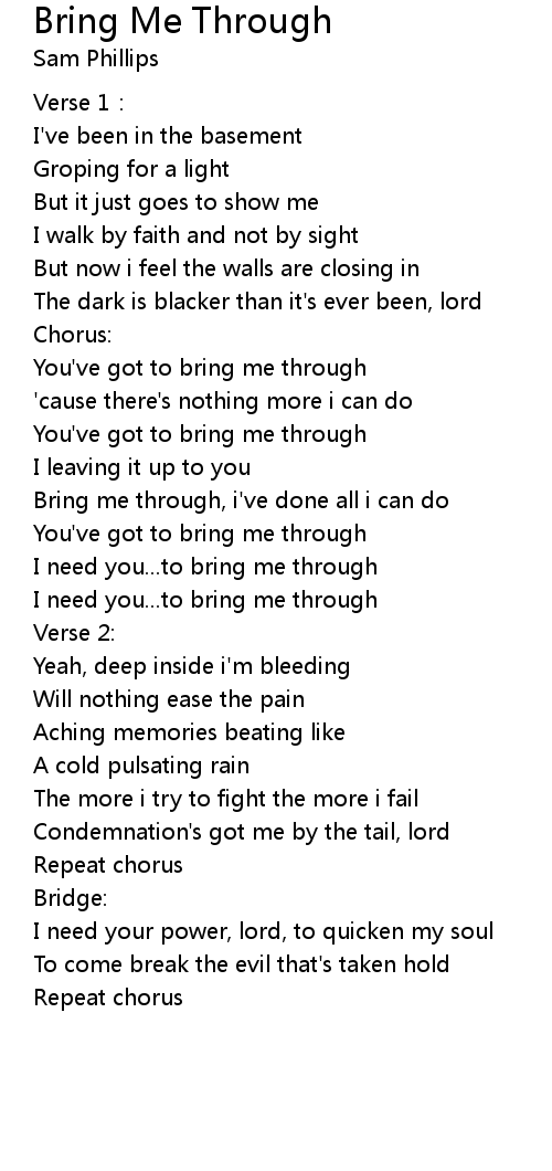 | I need you...to bring me through | |
