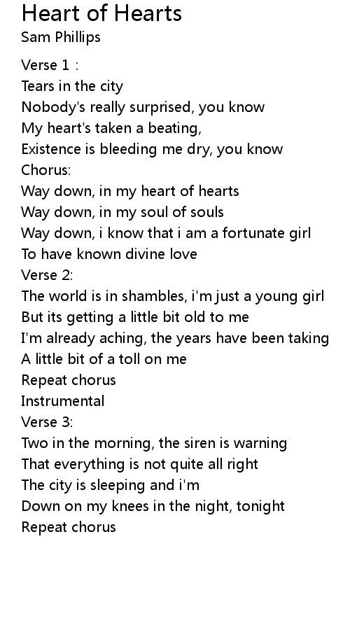 | Way down, in my heart of hearts | |