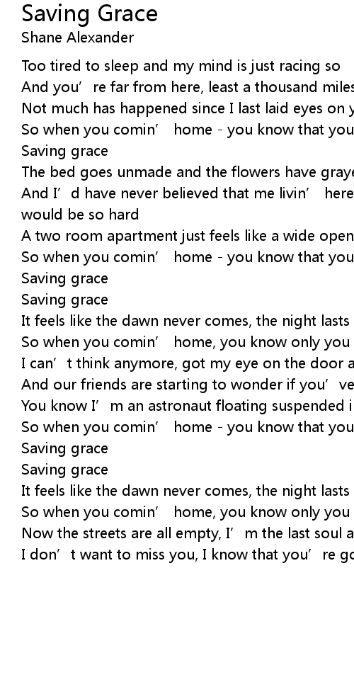 | So when you comin’ home - you know that you’re my saving grace | |
