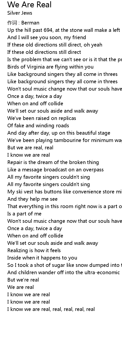 | I know we are real, real, real, real, real |