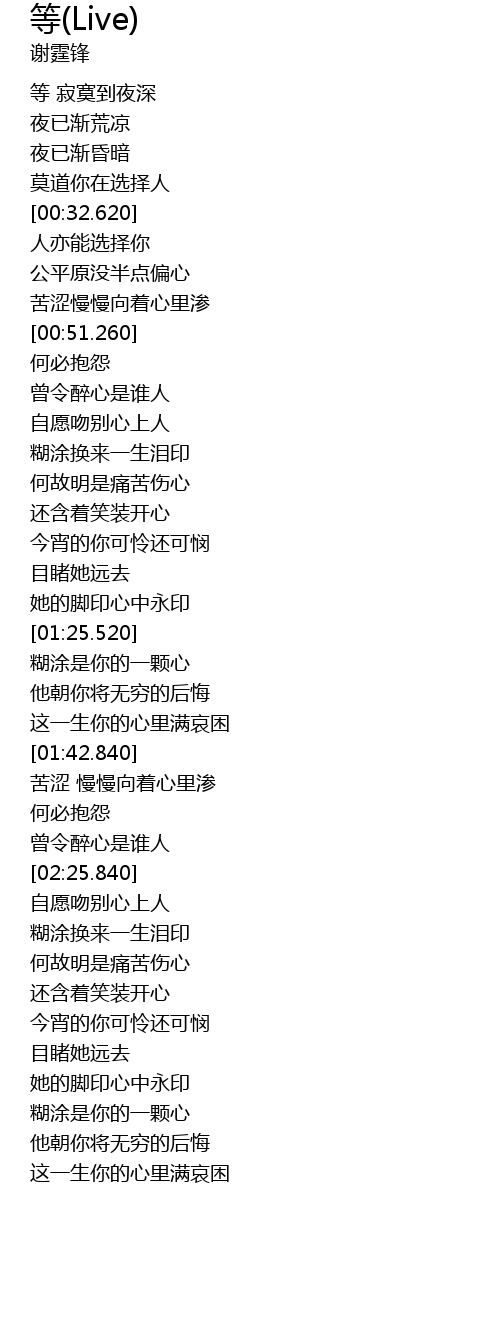 | [00:58.760] | zì yuàn wěn bié xīn shàng rén |