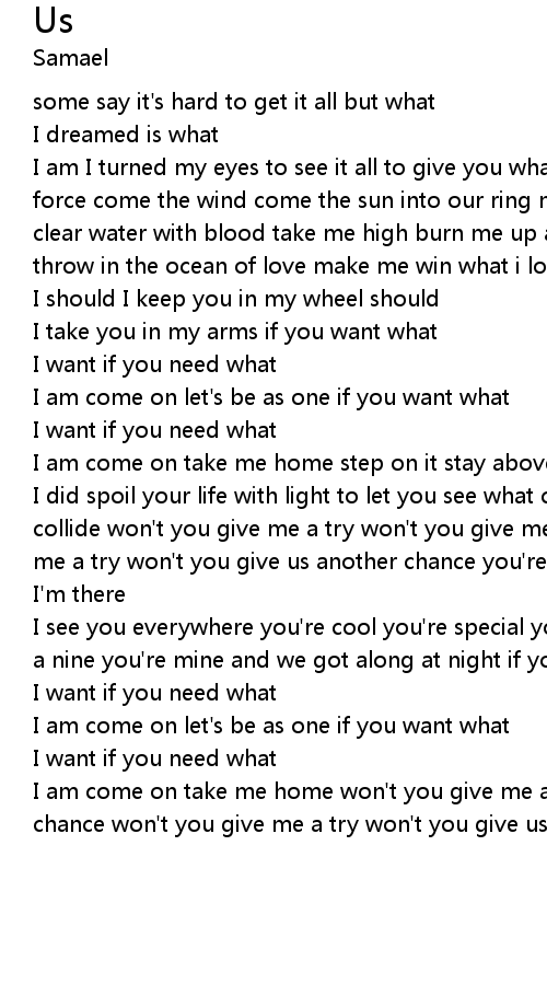 | I did spoil your life with light to let you see what can be if our hearts ever collide won't you give me a try won't you give me another chance won't you give me a try won't you give us another chance you're here when | |