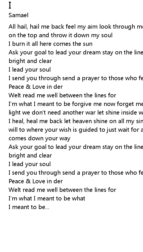 | All hail, hail me back feel my aim look through me now come to me, fly in me get on the top and throw it down my soul | |