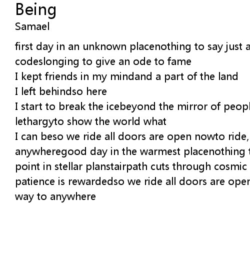 | I can beso we ride all doors are open nowto ride, take the straight way to anywheregood day in the warmest placenothing to say just visiting spacesolar point in stellar planstairpath cuts through cosmic landcan pay with time patience is rewardedso we ride all doors are open nowto ride, take the straight way to anywhere |