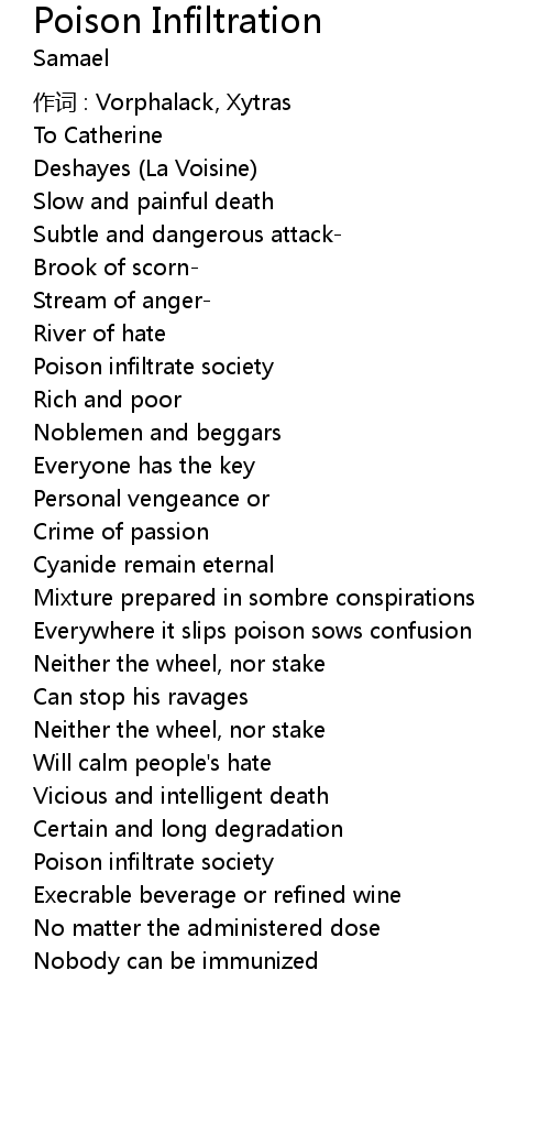 | Poison infiltrate society | |