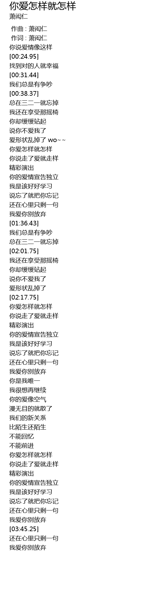 | [01:02.89] | nǐ ài zěn yàng jiù zěn yàng |