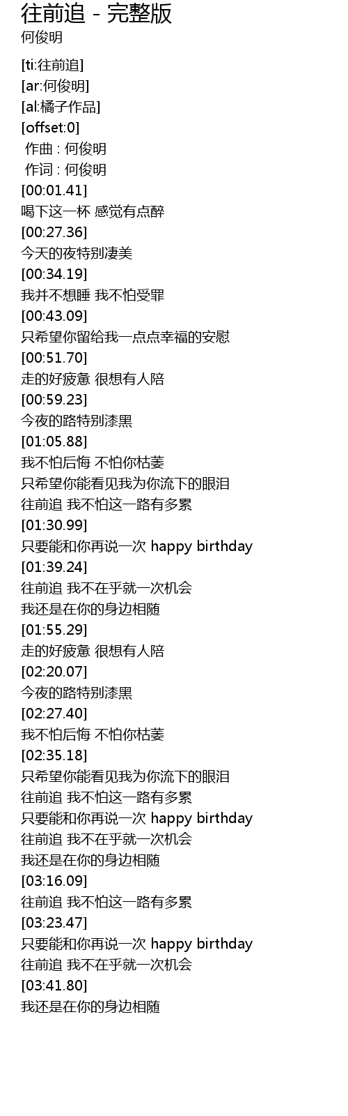 | [01:40.80] | 往前追 我不在乎就一次机会 |