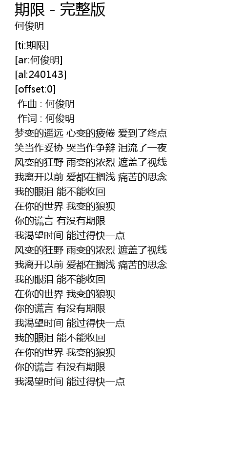 | [00:00.00] | zuò qǔ : hé jùn míng |