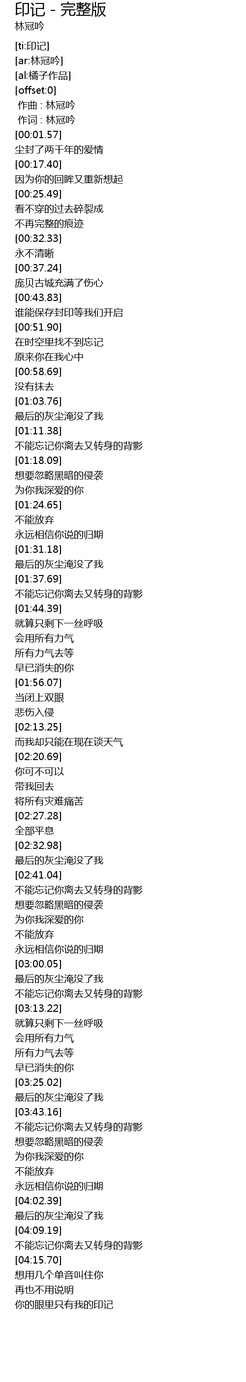 | [04:22.75] | ni de yan li zhi you wo de yin ji |