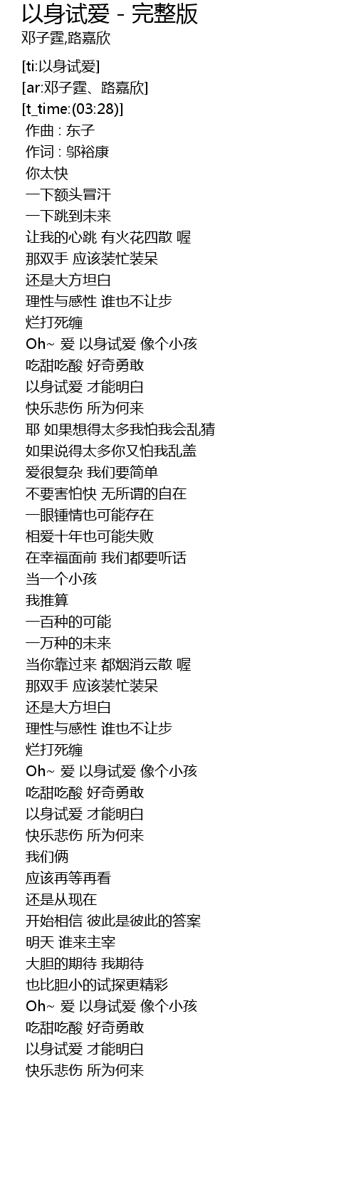 | [02:39.37] | Oh~ 爱 以身试爱 像个小孩 |