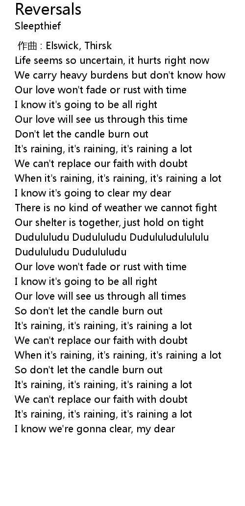 | [03:16.33] | When it's raining, it's raining, it's raining a lot |