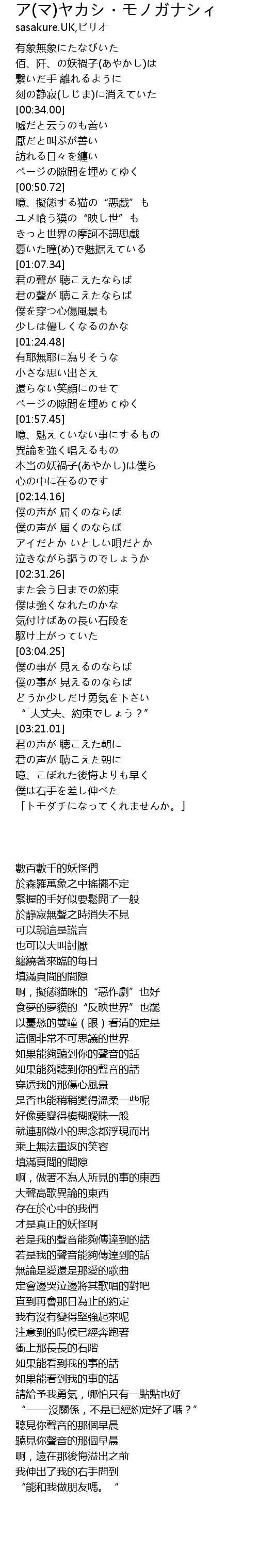| [00:21.61] | 佰、阡、の妖禍子(あやかし)は |
