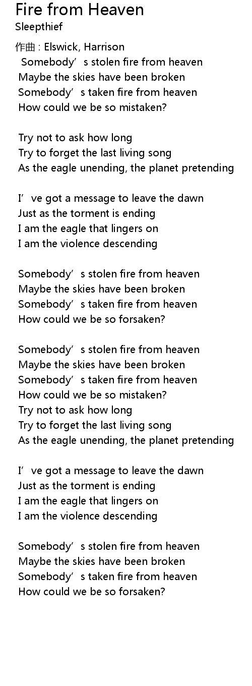 | Somebody' s stolen fire from heaven | |