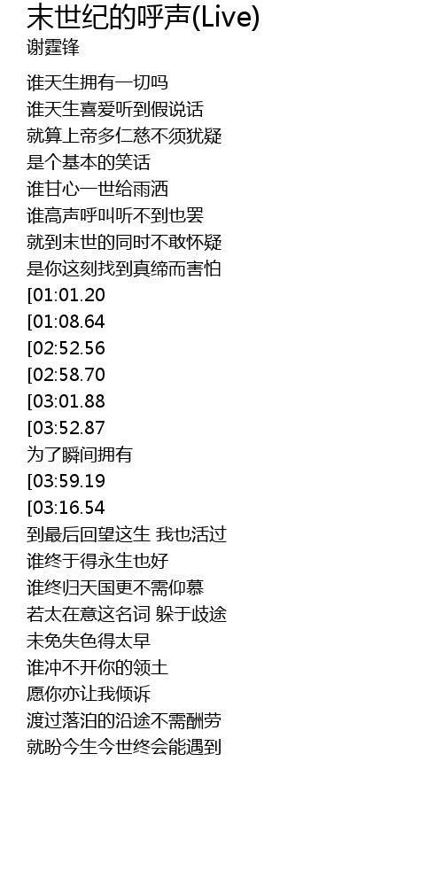 | [00:53.53] | 是你这刻找到真缔而害怕 |