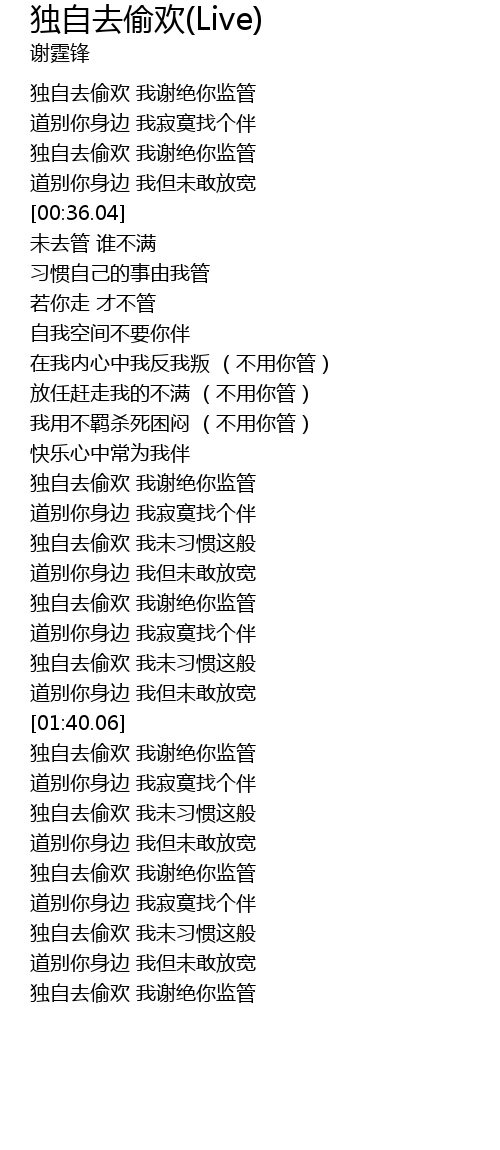 | [02:00.78] | 独自去偷欢 我谢绝你监管 |