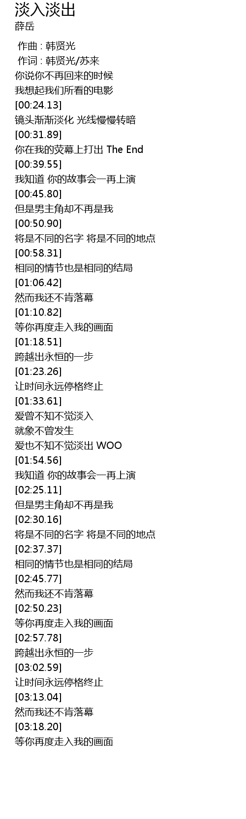 | [00:41.15] | 我知道 你的故事会一再上演 |