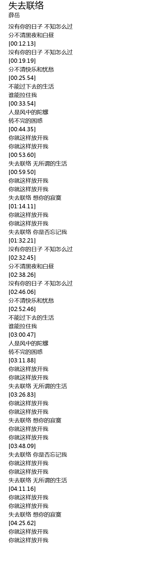| [04:19.47] | 失去联络 想你的寂寞 |