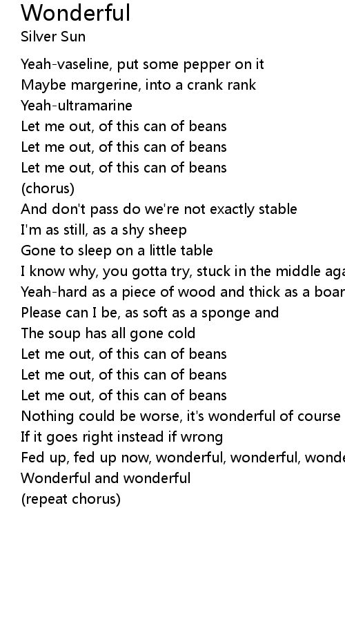 Fed up, fed up now, wonderful, wonderful, wonderful, |