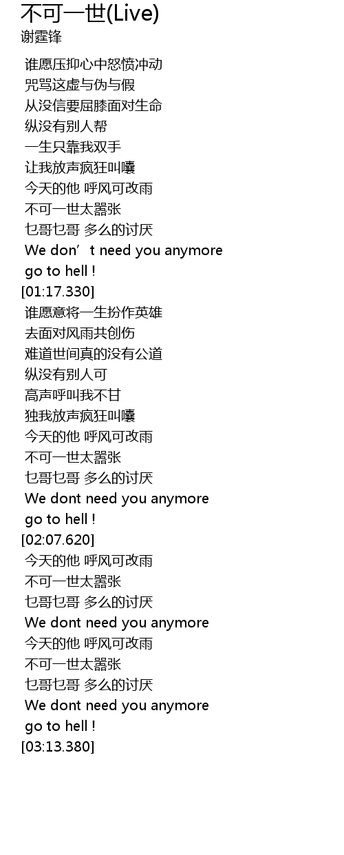 | [02:59.530] | 不可一世太嚣张 |