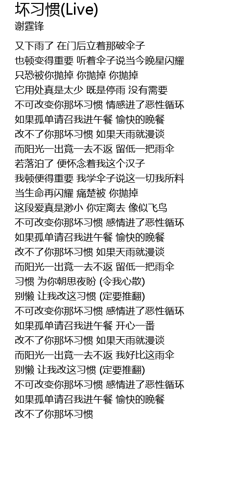 | Song | 坏习惯(Live) |