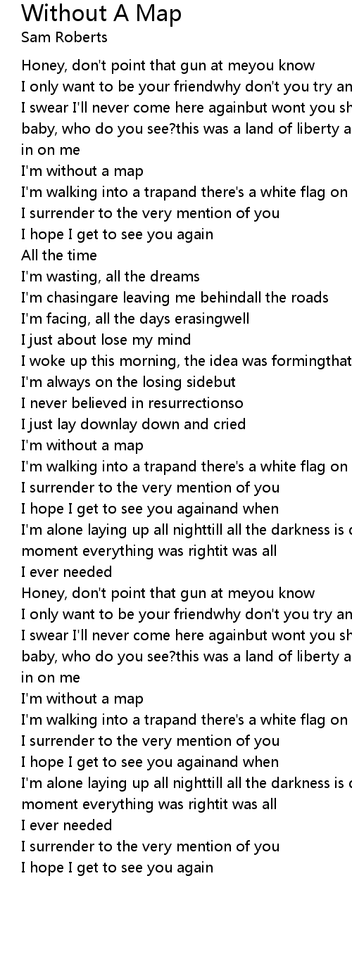 I swear I'll never come here againbut wont you shed some light on metell me baby, who do you see?this was a land of liberty and now it's closingit's closing in on me
