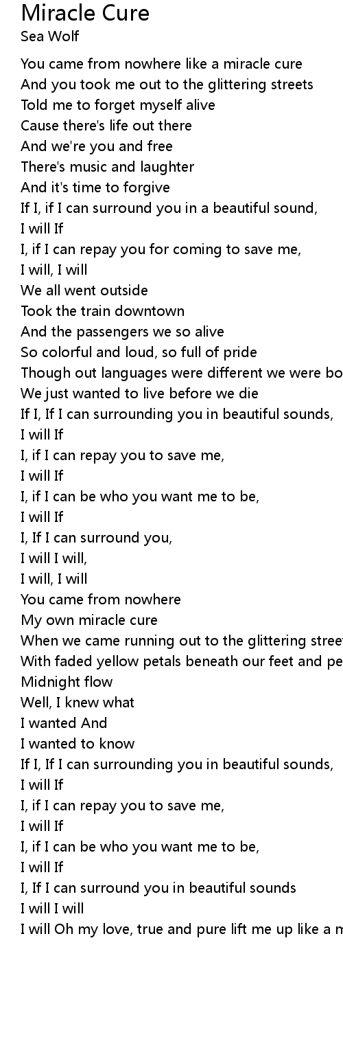 | I will Oh my love, true and pure lift me up like a miracle cure |