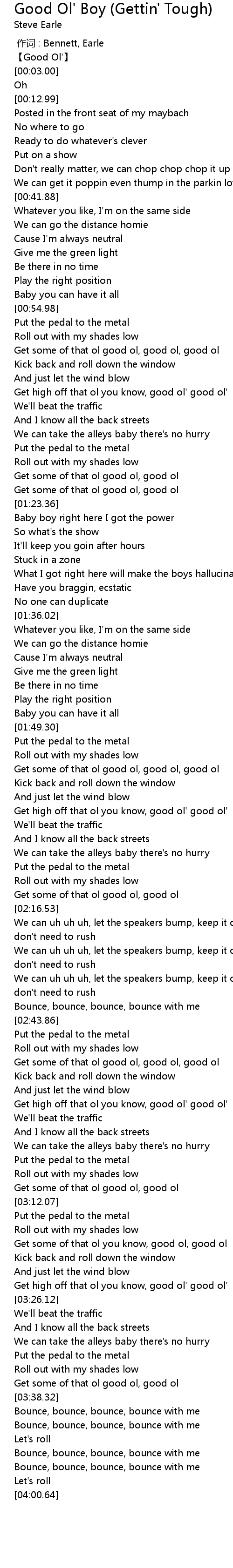 | [02:01.15] | Get high off that ol you know, good ol' good ol' |