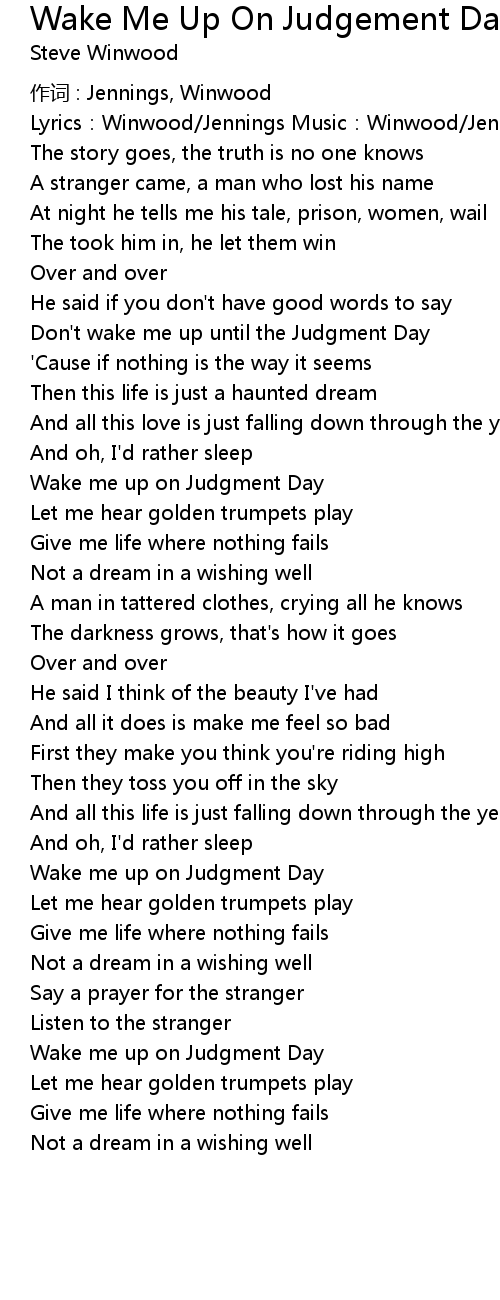 | Wake me up on Judgment Day | |