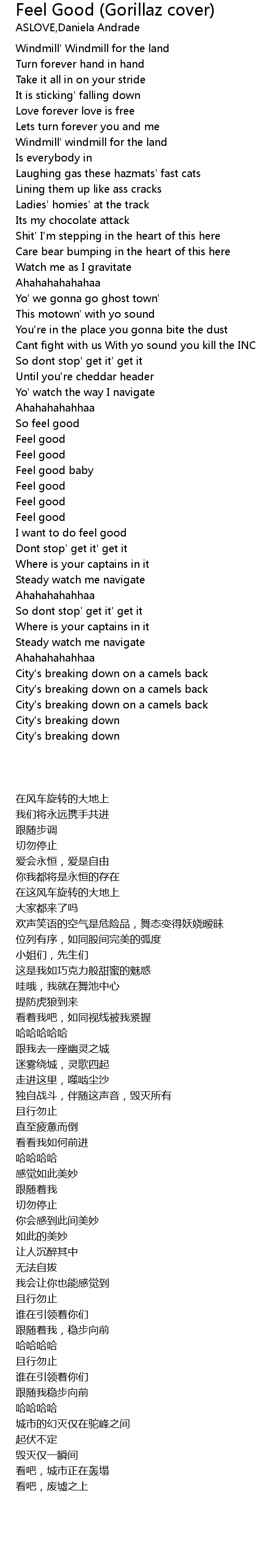 | [01:43.01] | Feel good |