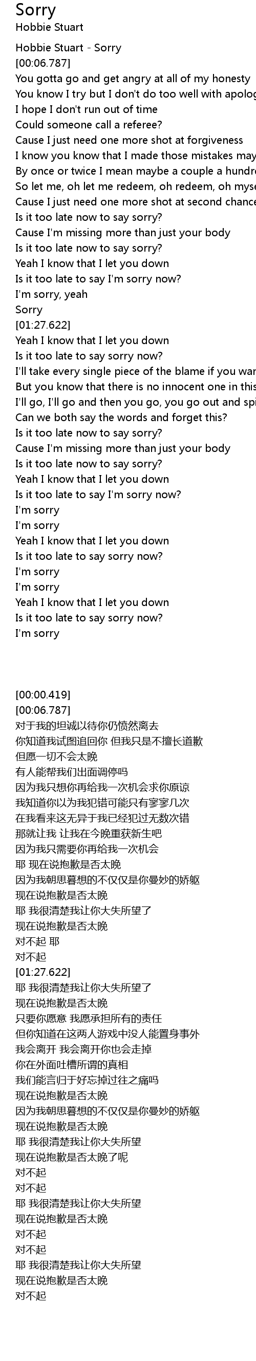 [00:00.419] Hobbie Stuart - Sorry