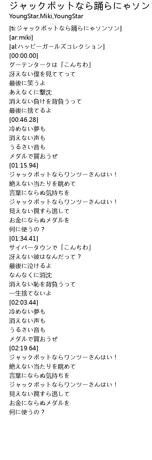 [ti:ジャックポットなら踊らにゃソンソン] |