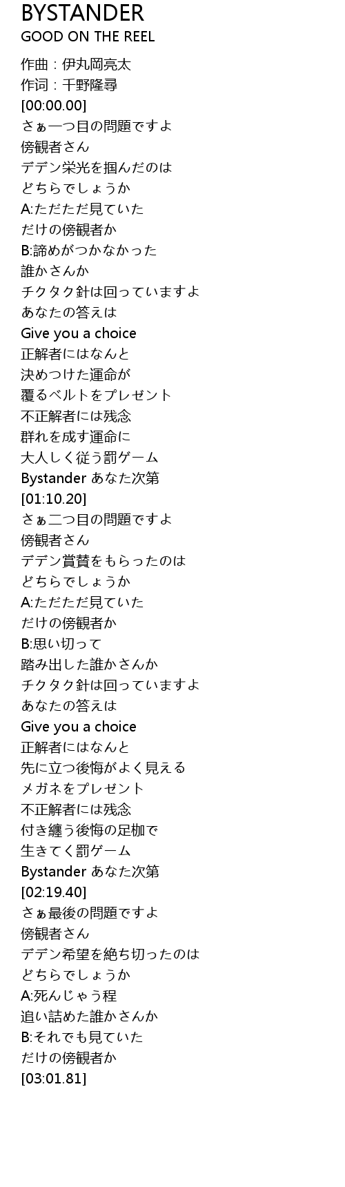 | [02:45.18] | デデン希望を絶ち切ったのは |