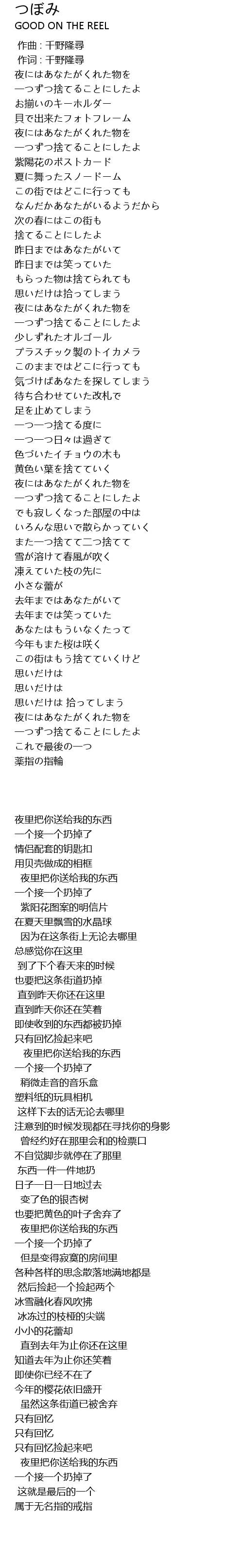 | [02:53.90] | また一つ捨てて二つ捨てて |