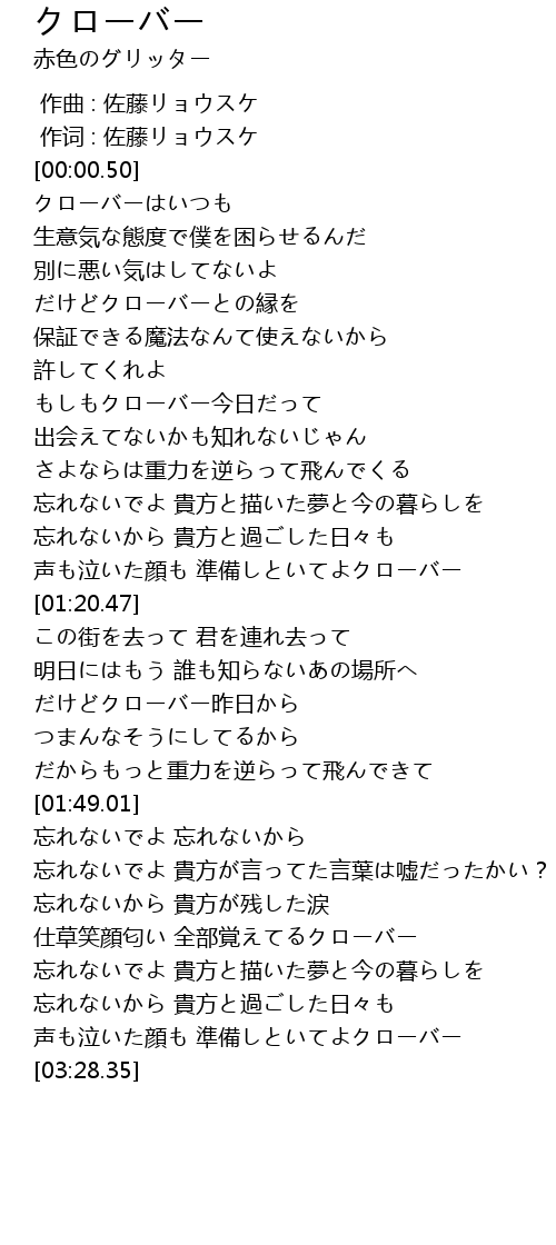 | [03:16.74] | 声も泣いた顔も 準備しといてよクローバー |